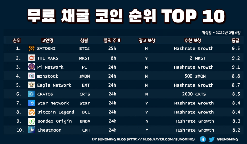 이와 더불어 무료채굴코인을 활용한 앱테크까지 꾸준히 한다면 상당히 좋을 것 같아 순위를 정리해 보았습니다.
